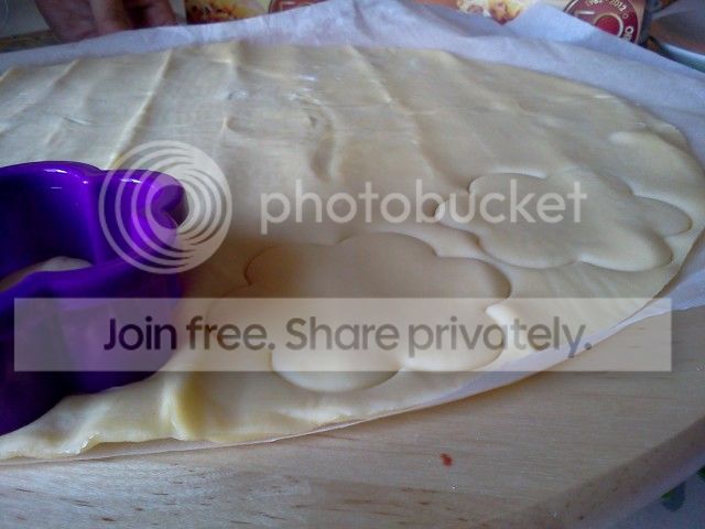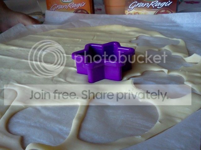 Srotolate la pasta sfoglia aiutandovi con un po’ di farina. Con le formine realizzate dei piattelli di pasta che andrete ad adagiare su un piano o direttamente sulla teglia, con un foglio di carta forno sotto.